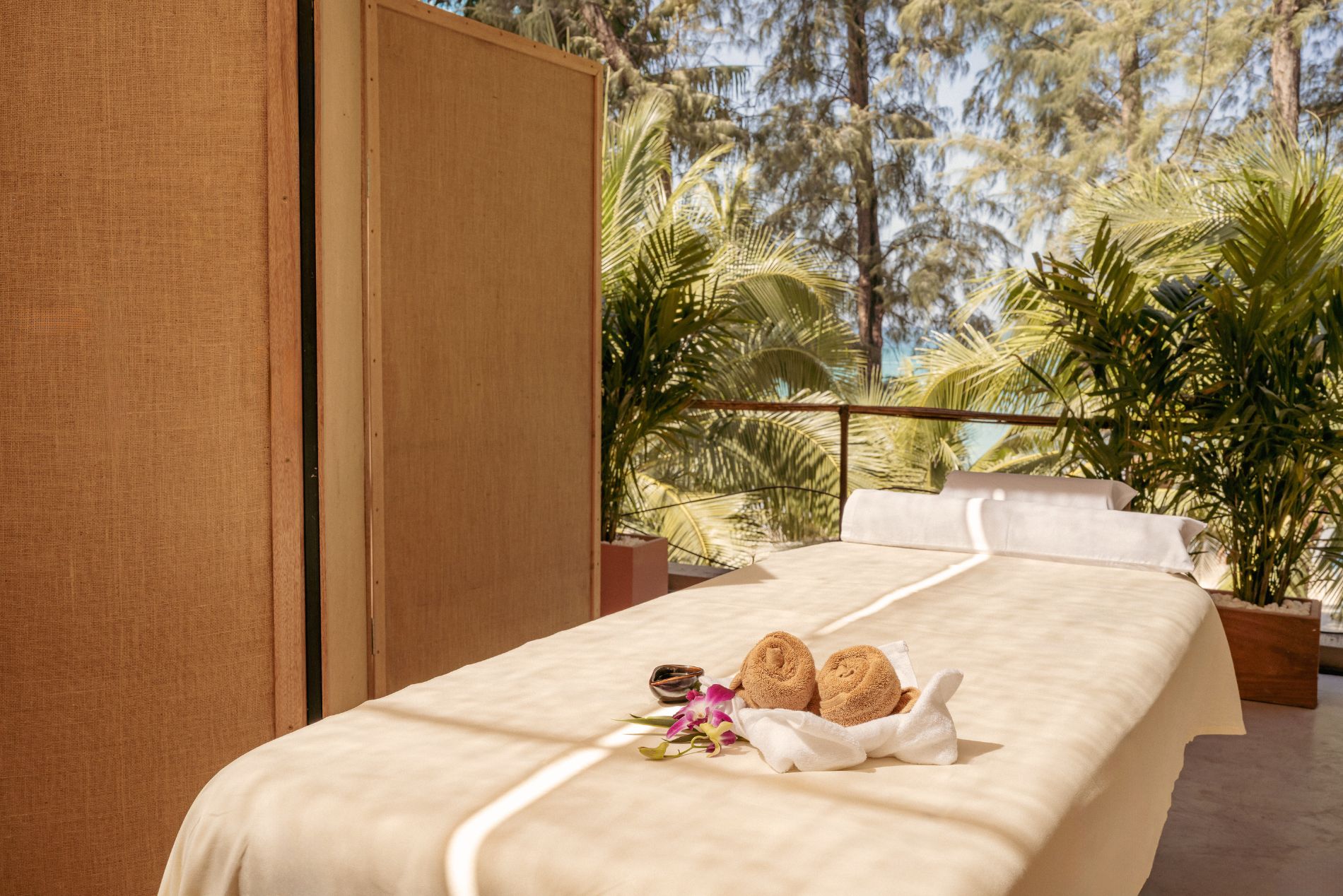 Choose your perfect poolside retreat—sun-warmed sunbeds, airy linen cabanas, or plush beach sofas. Attentive service ensures every wish is met as you bask in golden light or unwind in cool shade, all set against sweeping Kamala Bay views. (